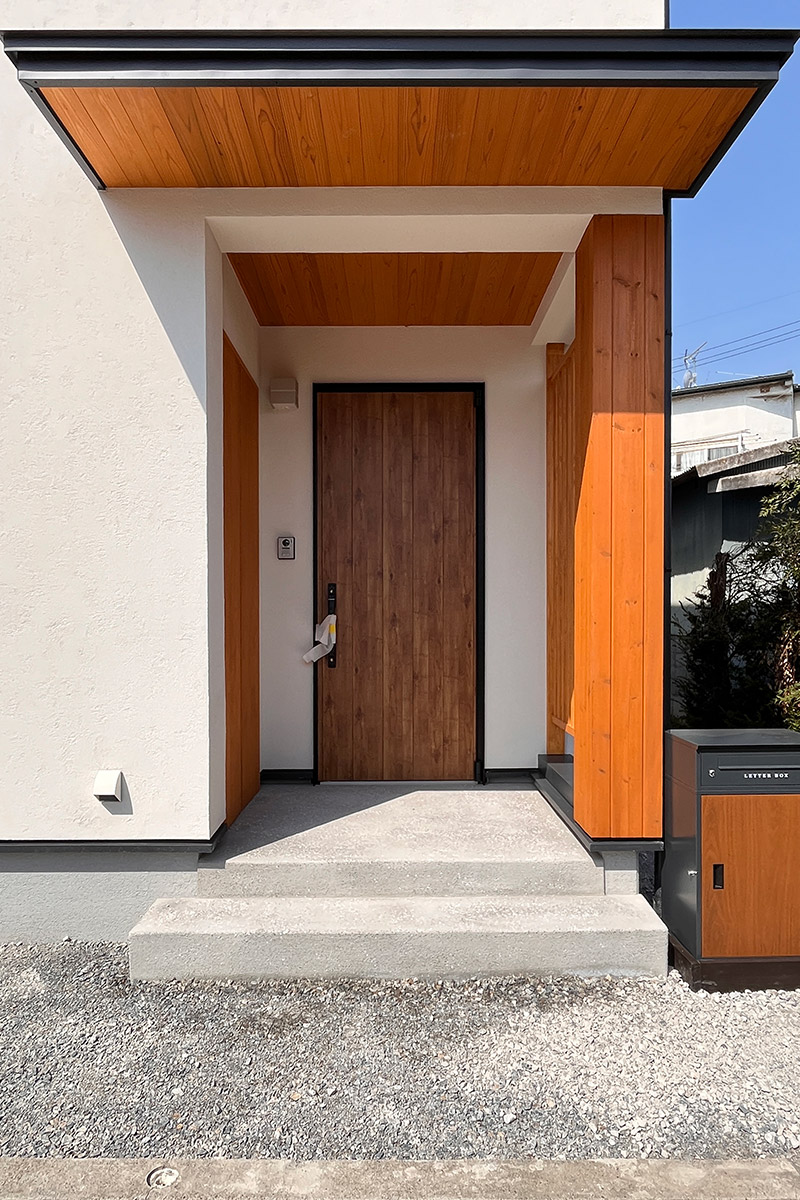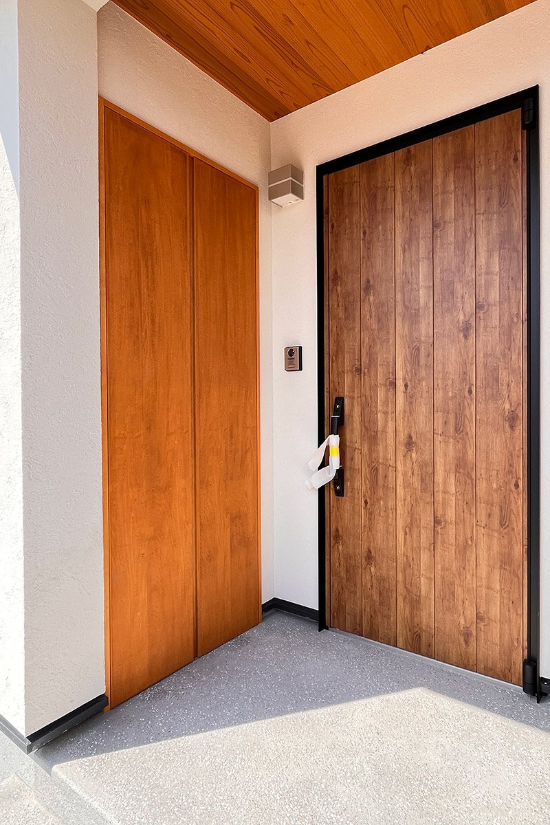 また、玄関ポーチ横には遊具などしまえる外収納を配置。
