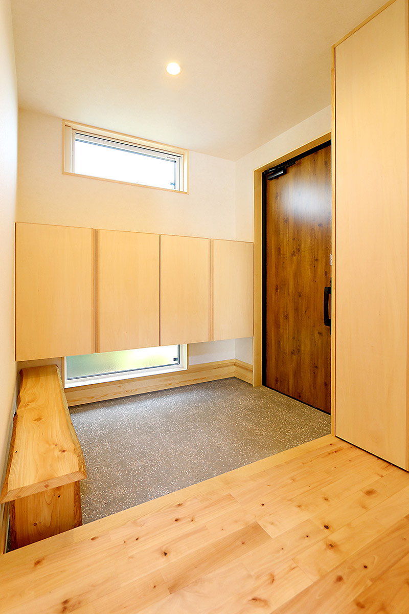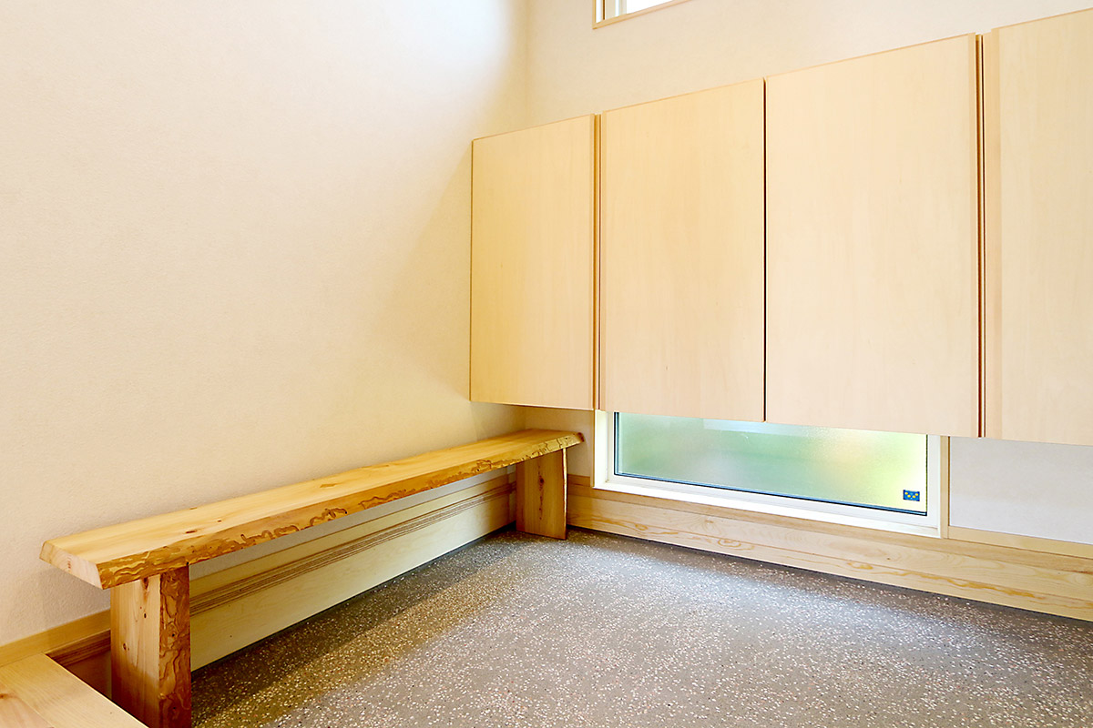 この他にも、大工の祖父から受け継いだこだわりの材を玄関のベンチなどに使用するなど、