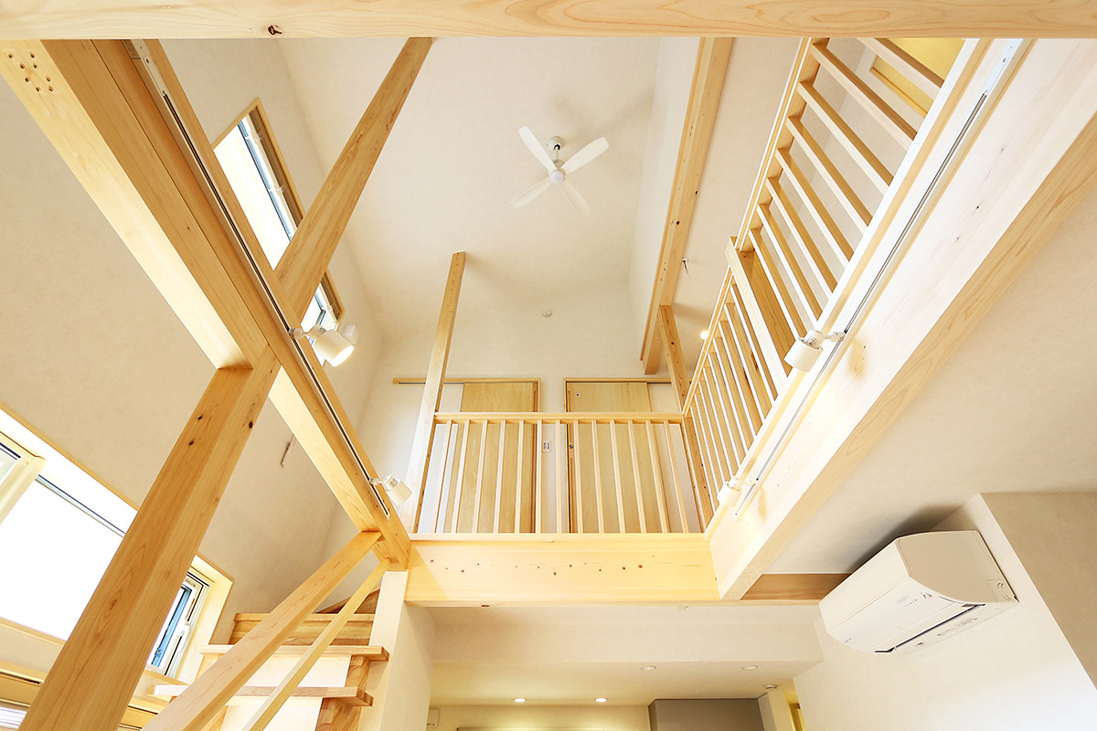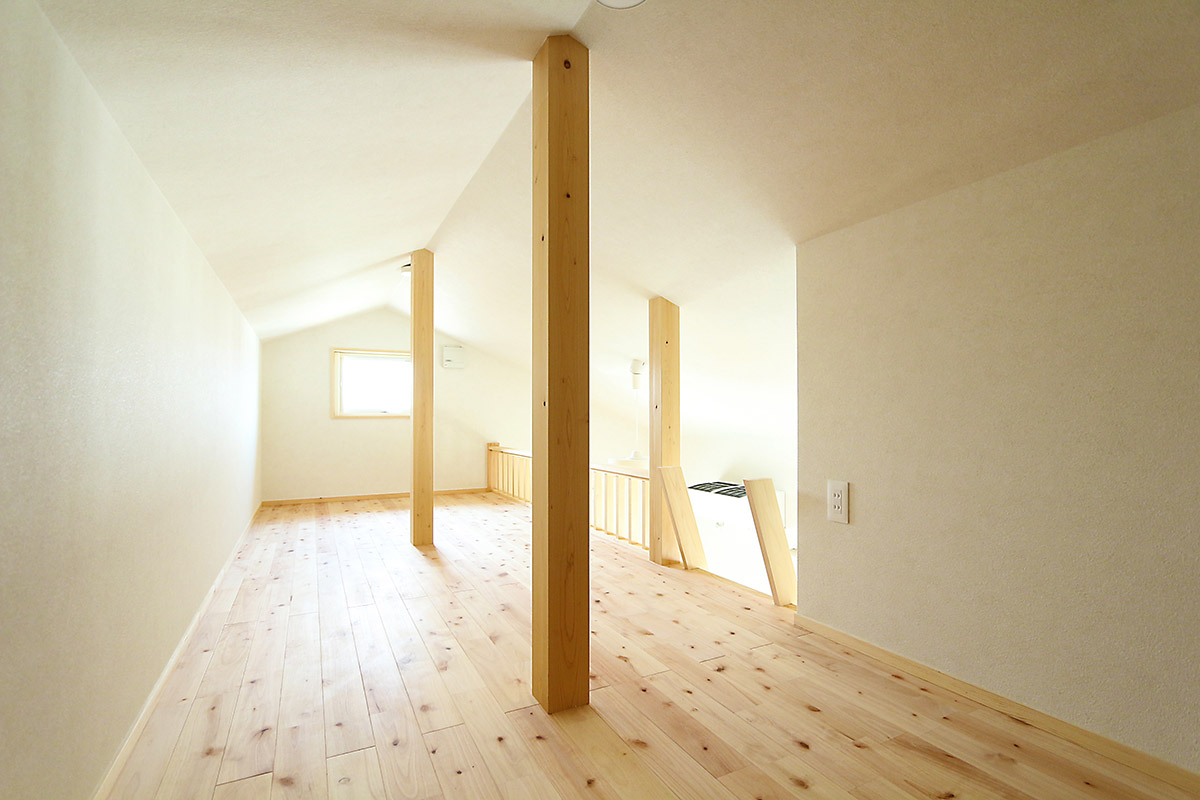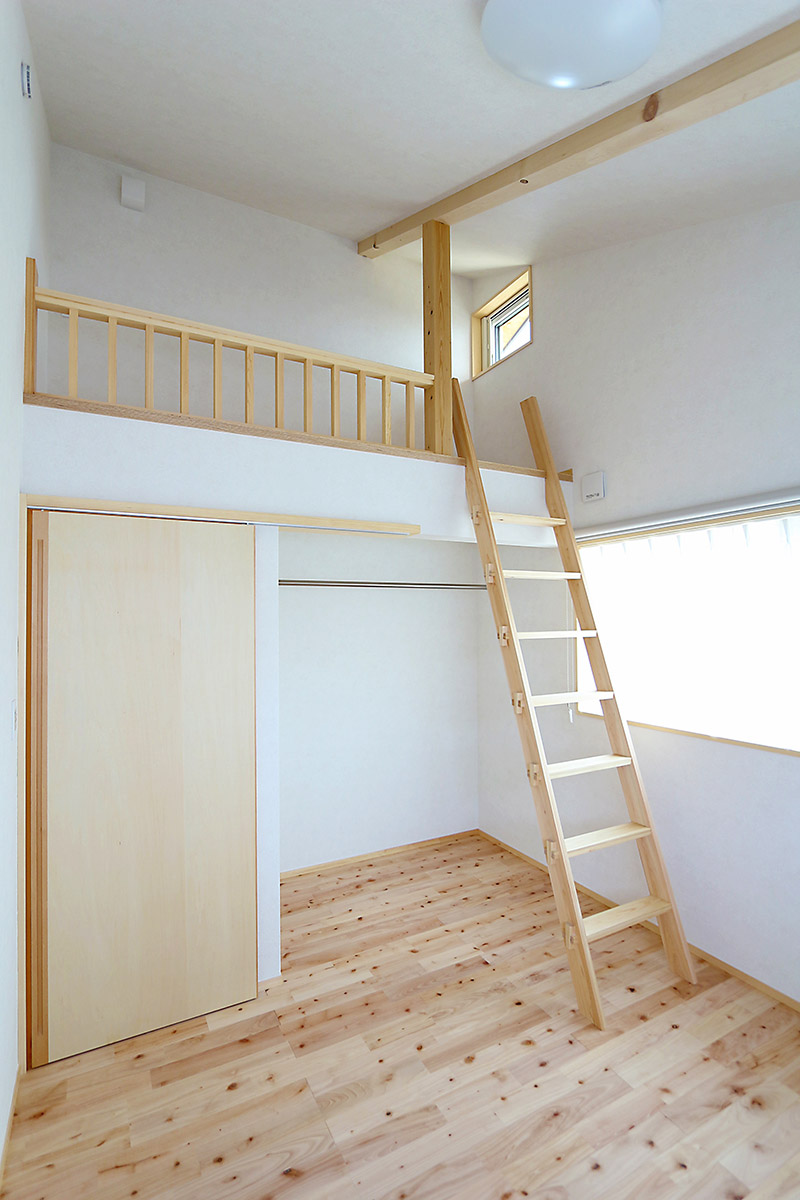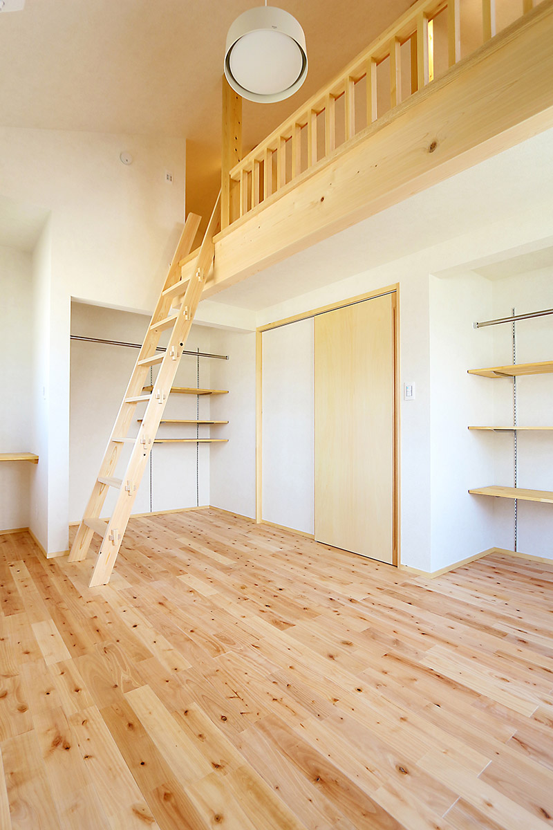 大人の部屋には、収納に便利な広いロフトを設けました。