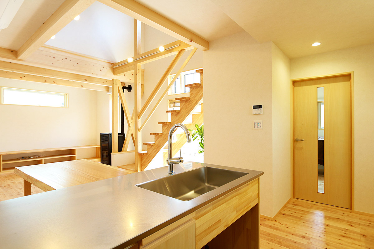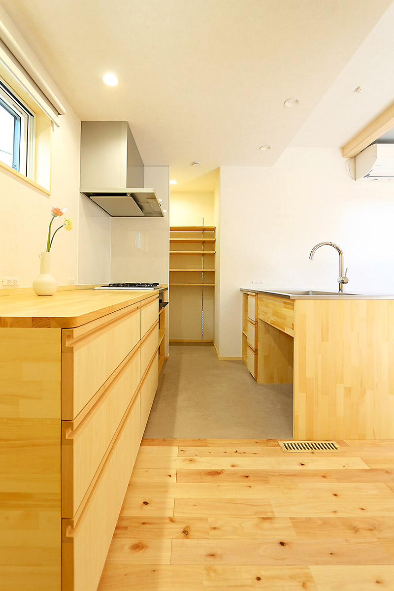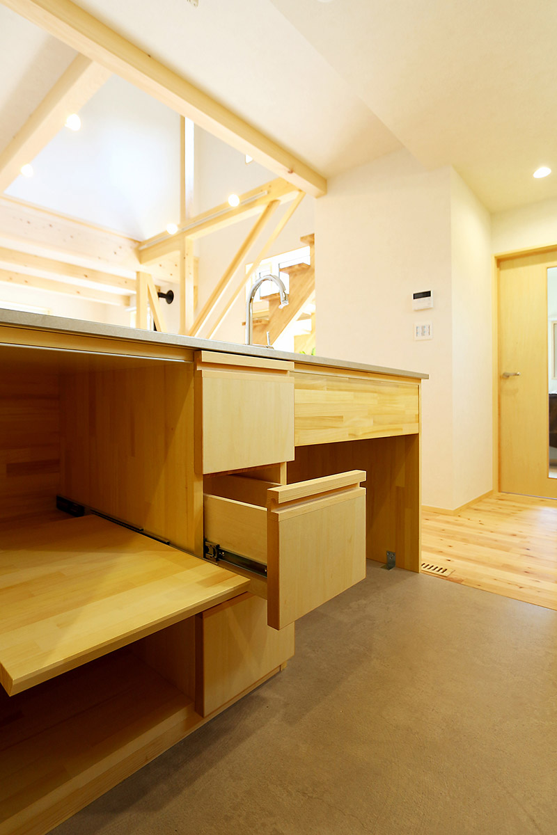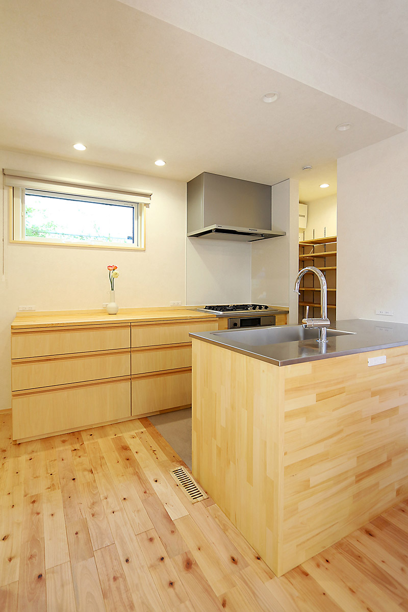 セパレートタイプの造作キッチンは、高さや収納の使い勝手も奥さま仕様。