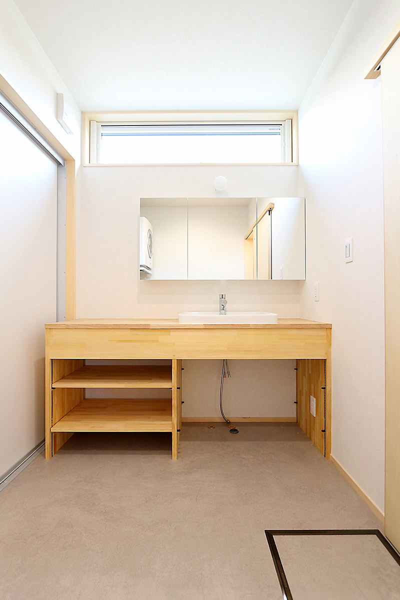 造作洗面台に加え、洗濯機と乾太くんを設置。