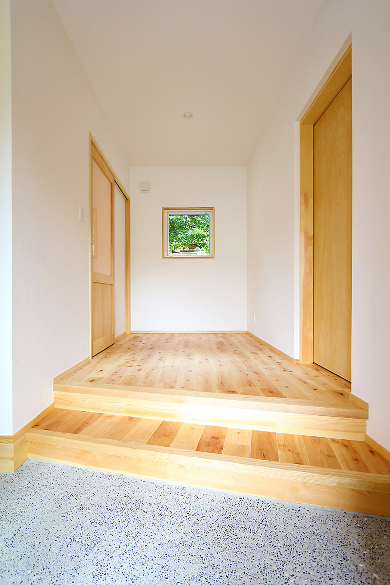 | 内部仕上 | 床 / 玄関ポーチ:タタキ仕上 1階・2階:西南カバ桜無垢板(自然塗料:いろは塗り) 壁 / クロス貼り 建具 / 製作建具 |