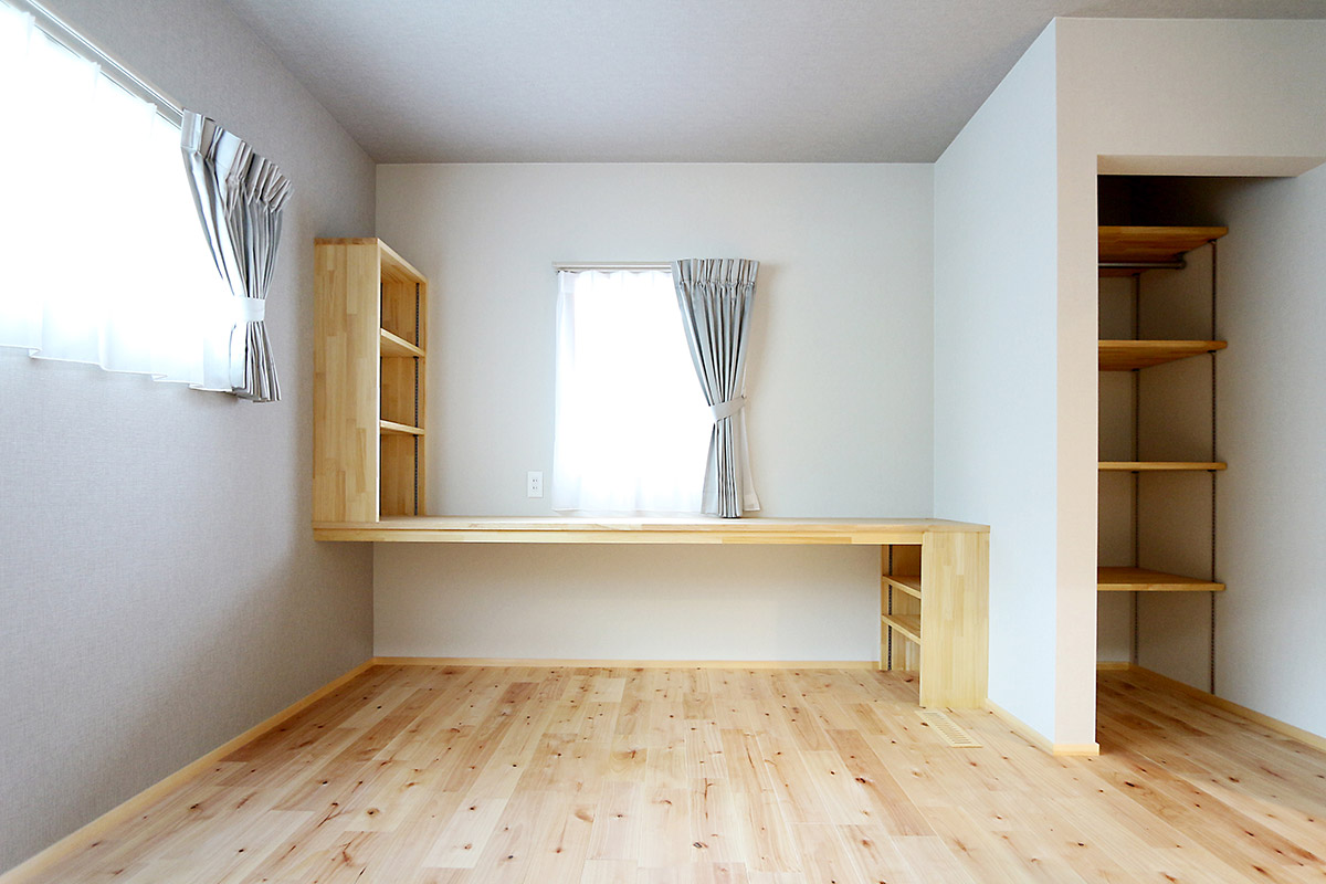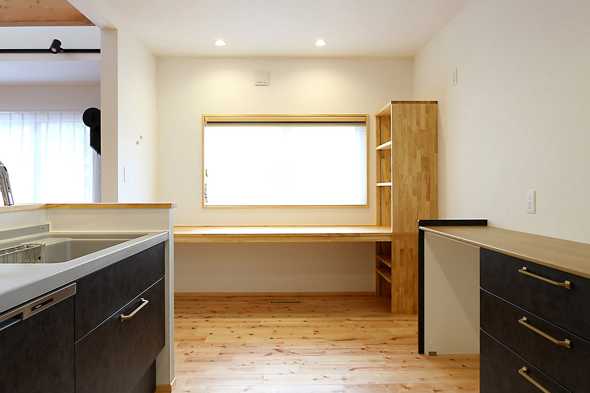 キッチン隣の造作カウンターは、子どもたちの専用スタディコーナー。