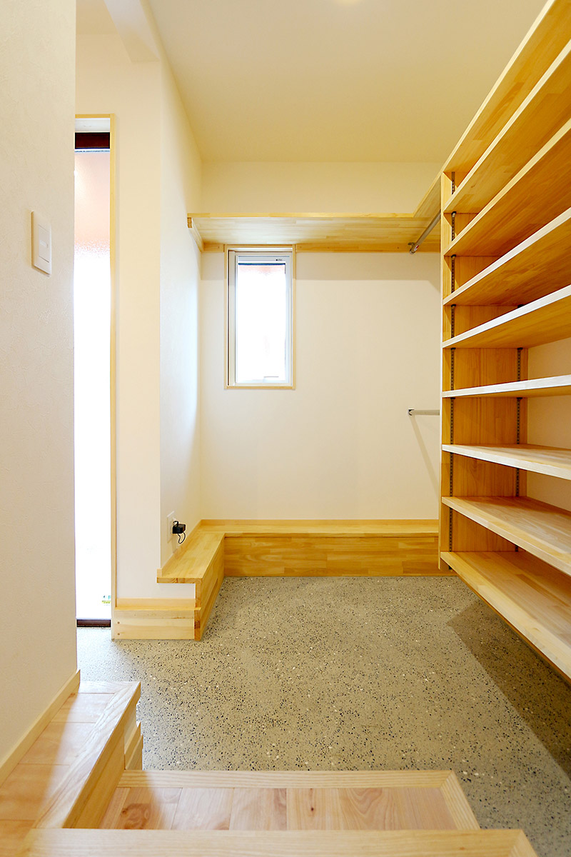 プライベート動線としても機能する、玄関横の広い土間収納や、