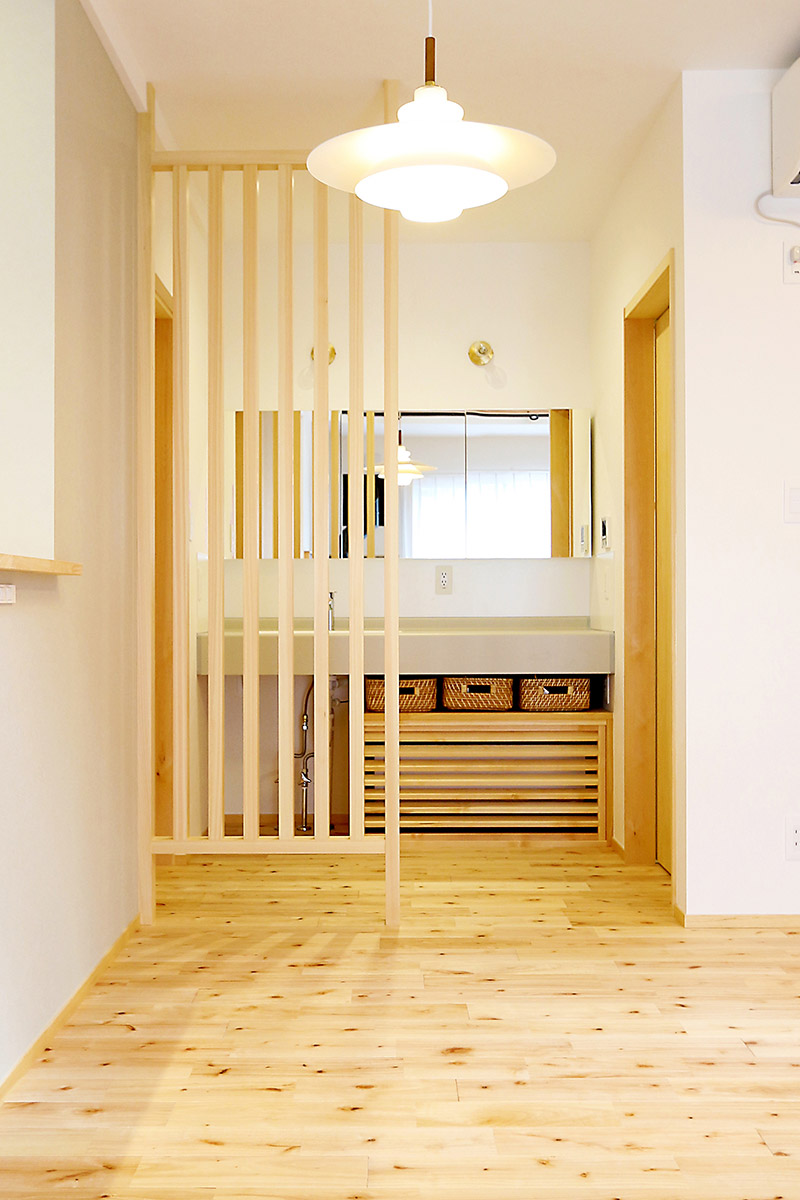 狭く使いづらかった洗面脱衣室を改善し、共働きご夫婦の洗濯負担を軽減。