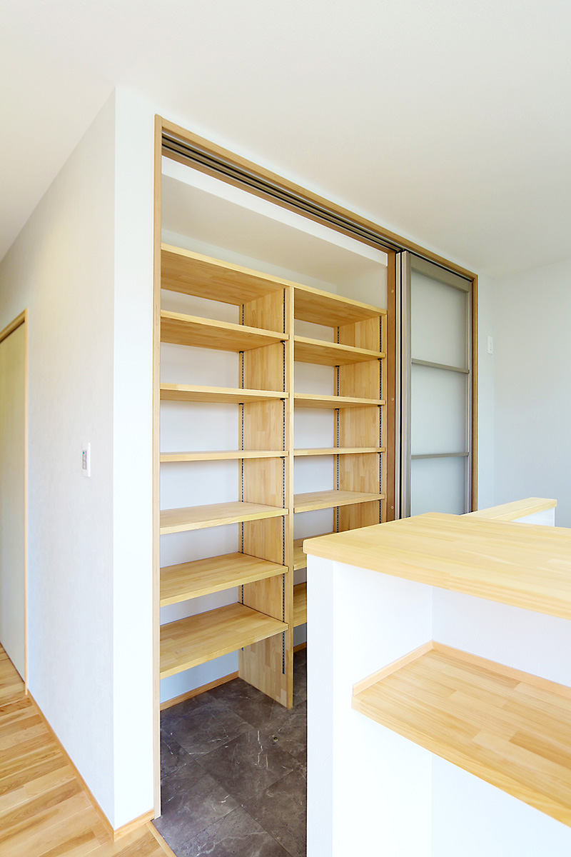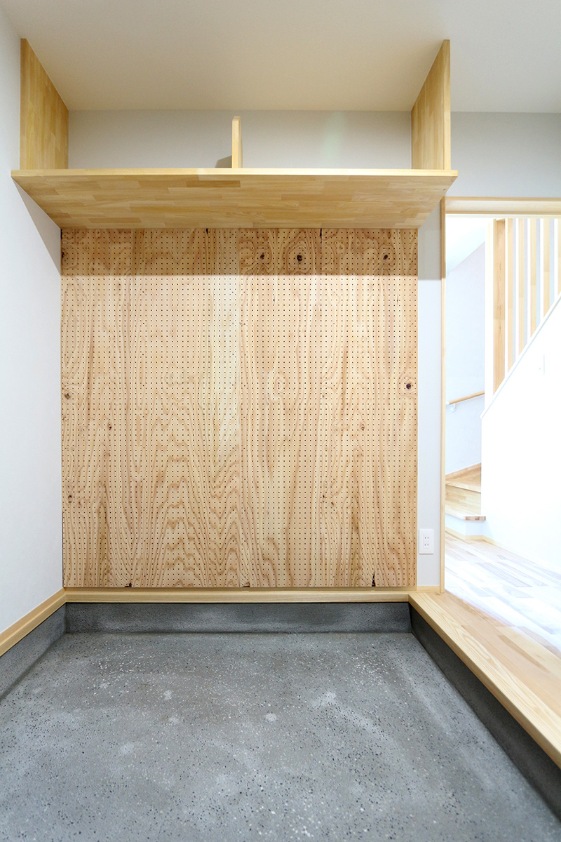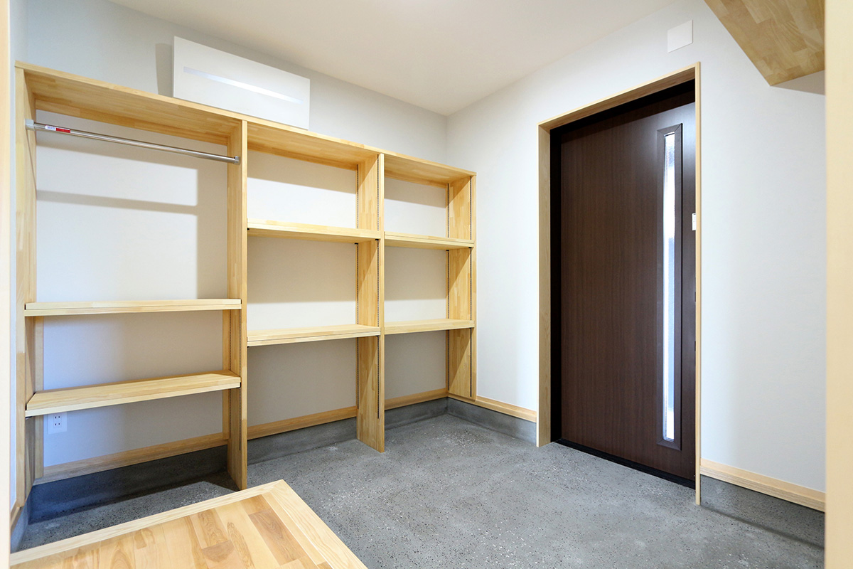 メインの玄関の隣には、普段使いの玄関としても使える土間収納を設置。