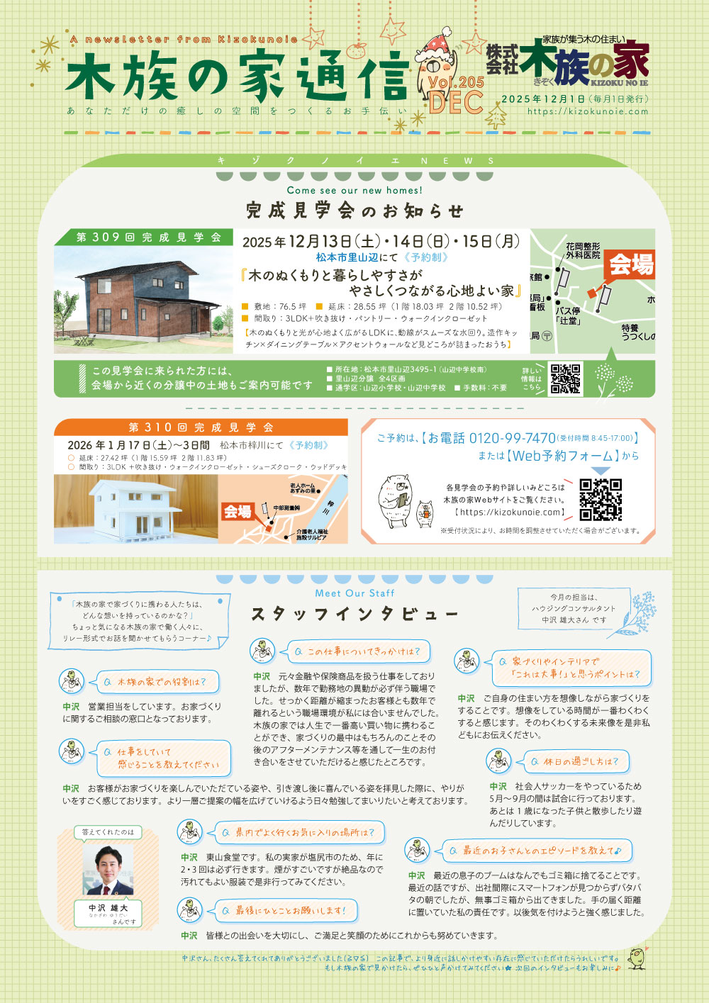 TOP › 新着情報 › 木族の家通信 2025年12月号-住まいと暮らしの情報誌
