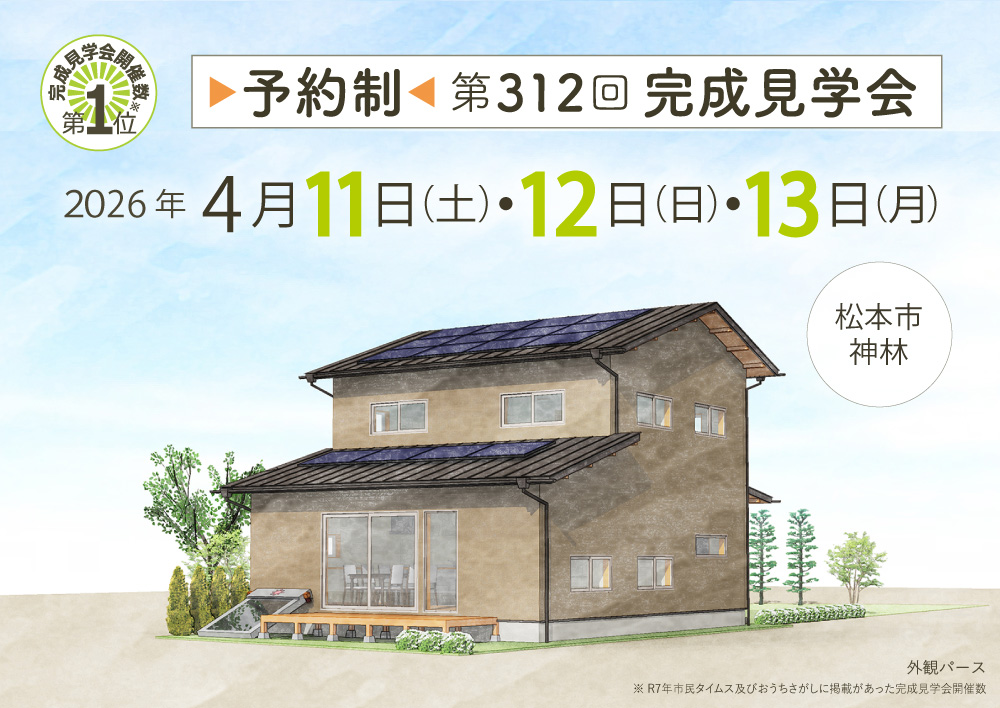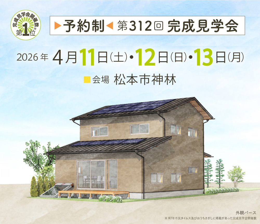 TOP › 新着情報 › 【完成見学会】4/11~13 松本市神林『強さと優しさを備えた長期優良の家』予約制