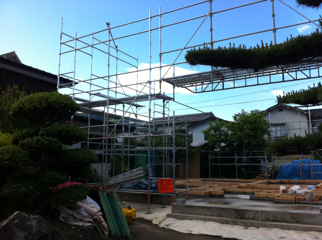 松本市の新築住宅の建方が始まりました。