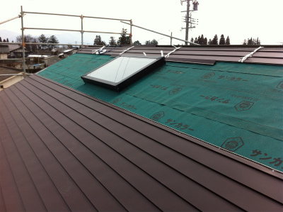 ルーフィングを敷いた後に屋根材を葺きました。