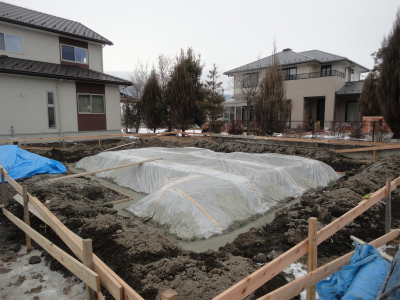 土壌に防蟻処理を施し、防湿シートを敷き込み