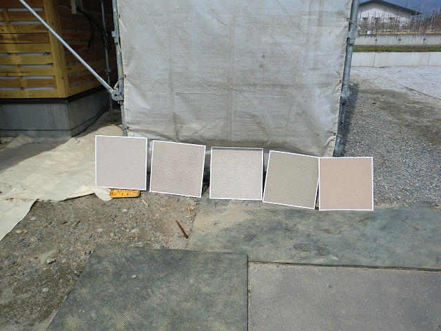 今日は外壁の仕上げの色とパターンの打ち合わせと、スイッチやコンセントの位置の確認が主です。