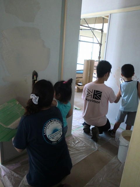玄関部分の2か所の壁を施主様が仕上げ塗りです。
