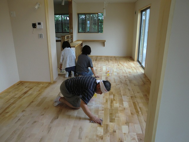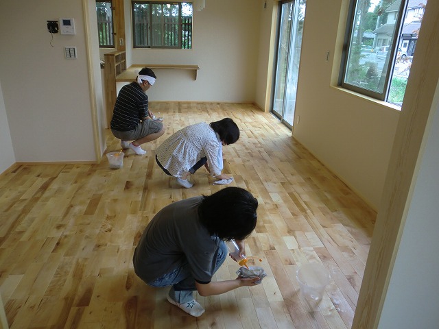お施主様と一緒に、床の塗装を行いました。