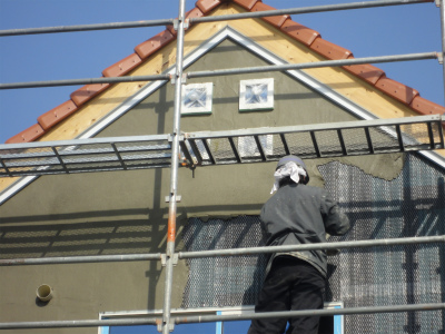 左官工事は天気に左右されるので、晴れ間を縫って作業を進めます。