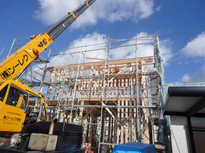 TOP › 現在の工事の様子 › 【松本市 N様邸】 建方2日目