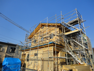 外壁の仕上げは塗り壁です。左官屋さんに塗ってもらう為に