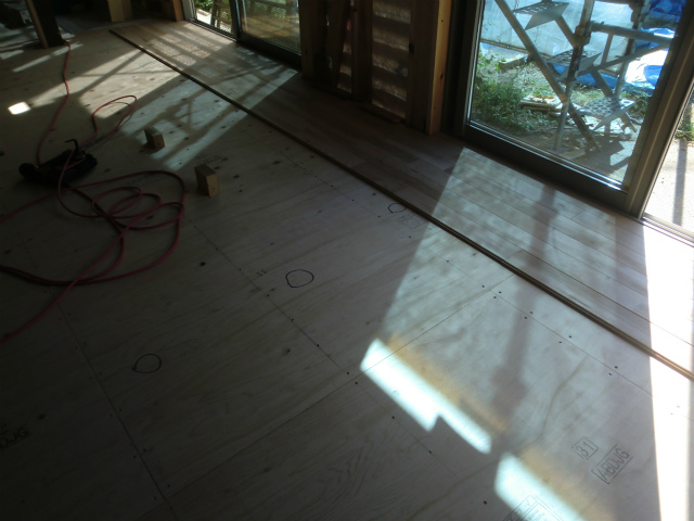 無垢の床張りが行われています。