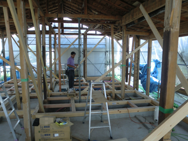 土台がほぼ終わり、柱・梁に取り掛かっています。