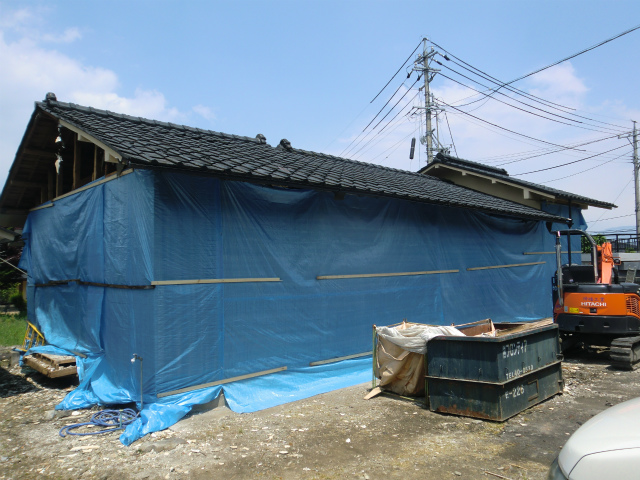 外壁の解体が完了してシート養生がされました。
