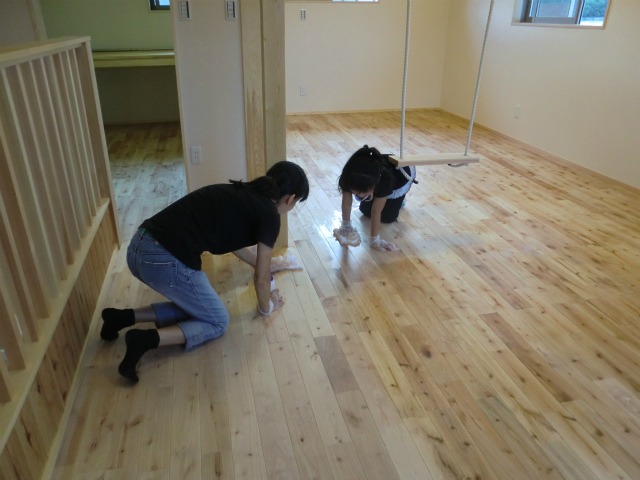 無垢の木には自然塗料を塗り、木の性能を損なわないようにします。