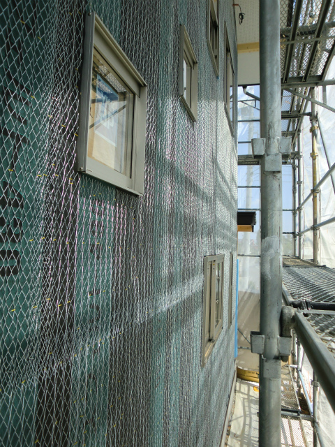 外部では左官屋さんが入り、ラス網の取り付けが完了しました。