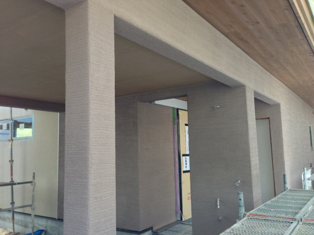 安曇野市の新築住宅 U様邸 左官工事3 中塗り