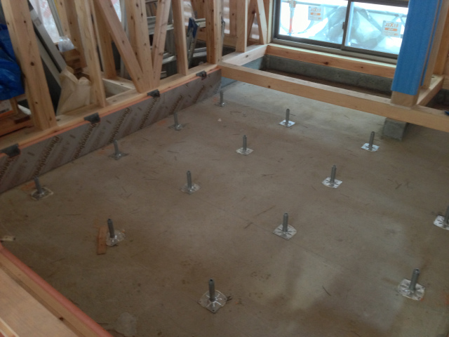 基礎に鋼製束を設置し、断熱材を充填しました。