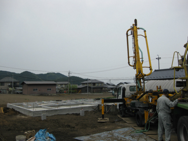 玄関ポーチ、犬走り等外部コンクリート打ちを行っています。