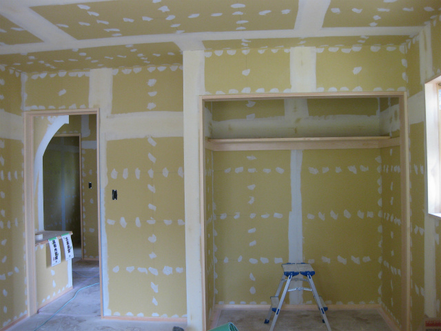 ボードを止めたビスやボードつなぎ目をパテ処理しています。