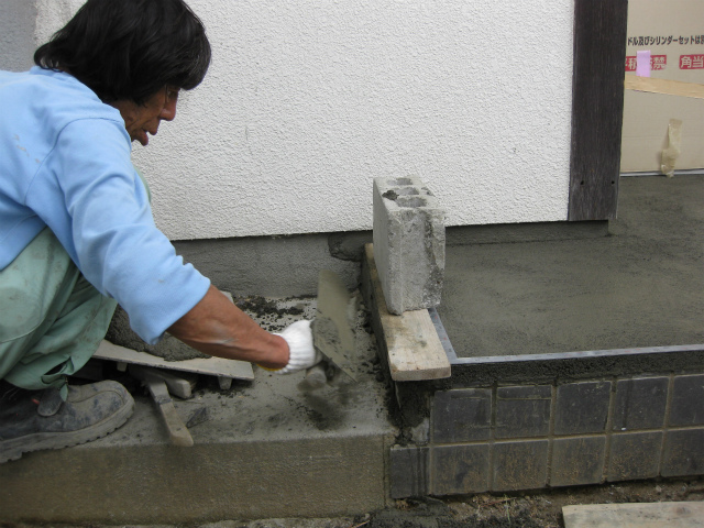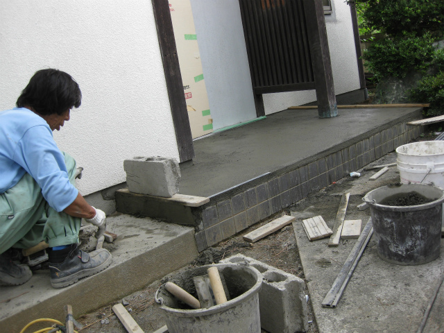 玄関、ポーチ床 タイルを張るための下地処理をしているところです。