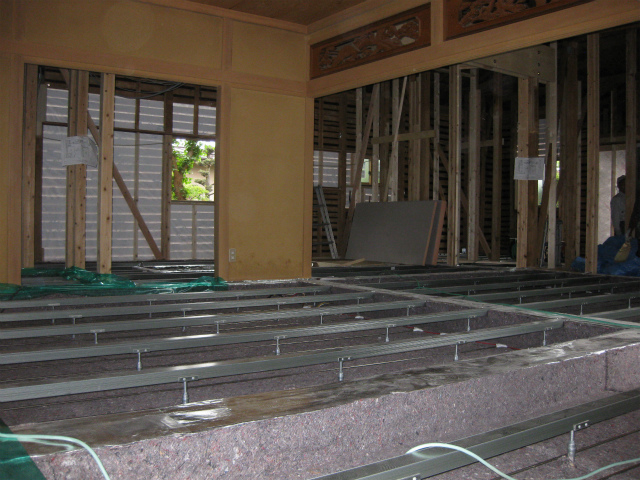 床をささえる、束、大引きは鉄製にし、熱が加わっても変形しないようにしています。