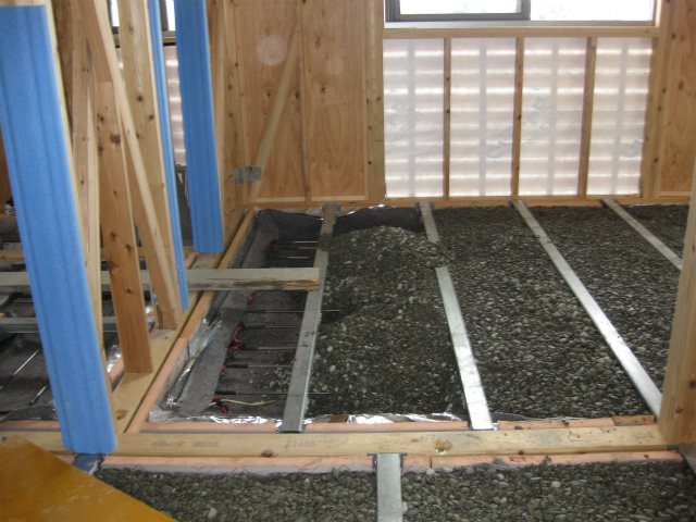 床下の配線工事、砂利敷きが始まりました。