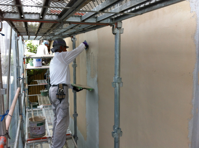松本市の新築住宅 U様邸 :左官工事【中塗り】