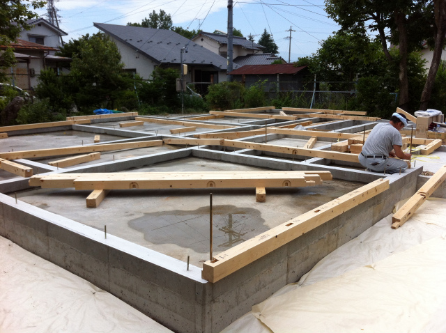 松本市の新築住宅 U様邸 :木工事【土台敷き】