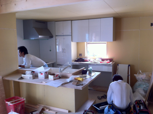 キッチンを組み立てています。