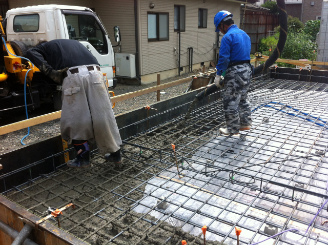 配筋検査後、コンクリートの打設をしました。