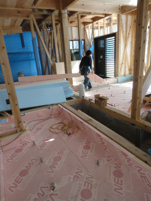 床暖房の熱が逃げないように、しっかりと断熱処理をします。